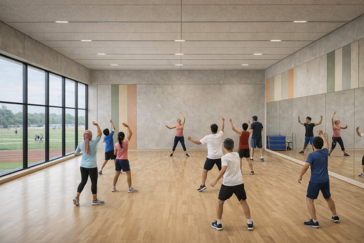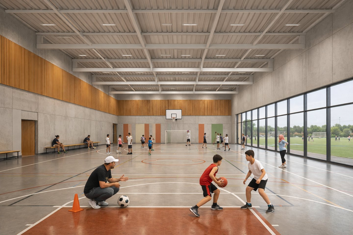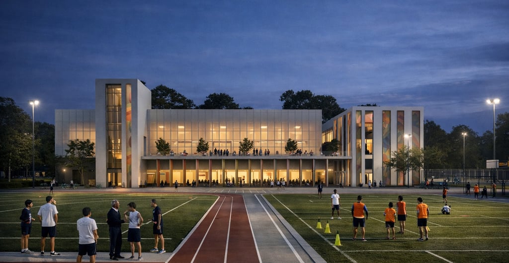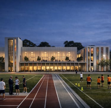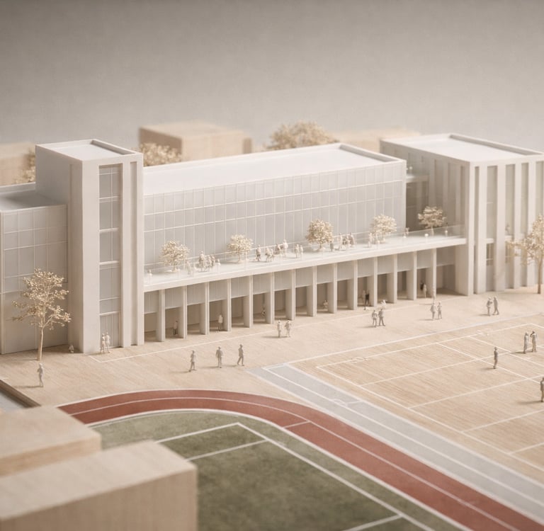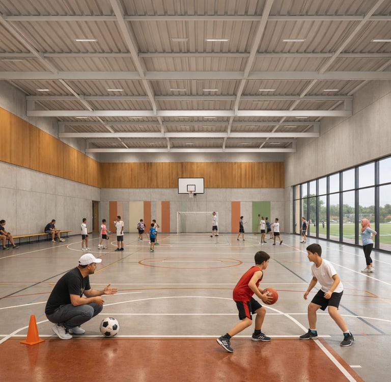 Rather than treating sports halls as isolated boxes, THE ACTIVE is organized around legible circulation, transparent edges, and social thresholds spaces where people naturally gather before and after activity.