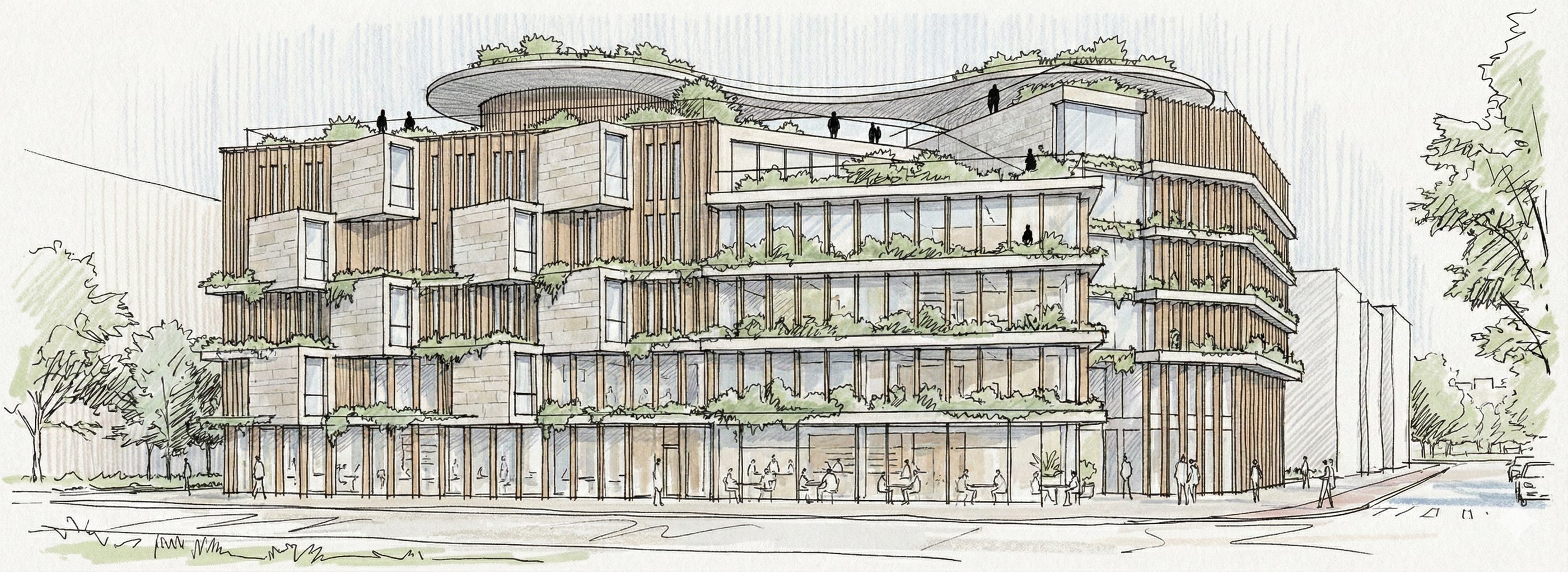 The project begins at the street. A transparent, active ground-level café and shared amenities anchor the building as a social base and connect workplace culture to the public realm, inviting energy from the city inward.